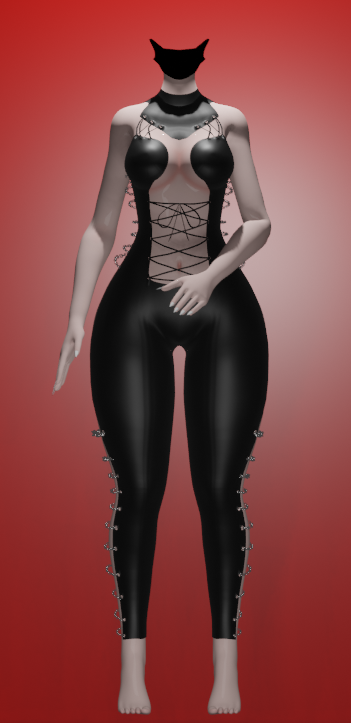 Has no materials, i suggest using metal for the chains and then the bodysuit itself is latex.